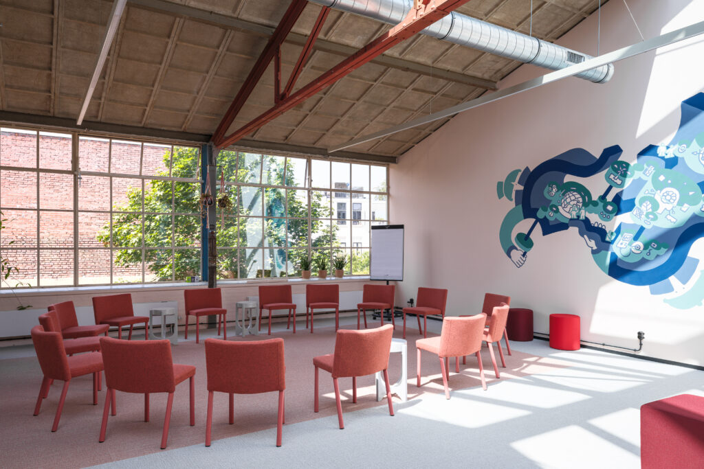 De GenietMee HUB, een meetingspace waar groepen elkaar ontmoeten om te werken, te leren of te creëren.